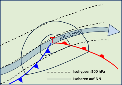 geringer und der ausgeprägte Polarjet an der Luftmassengrenze weist nur