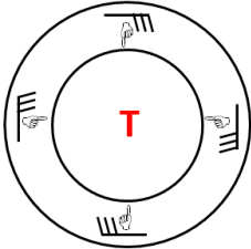 Drehsinn (im Uhrzeigersinn) um den Keil herum, wobei im Bereich der
