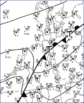 Warmfront an, da hier die Warmluft polwärts vorstößt und auf die